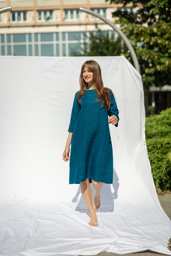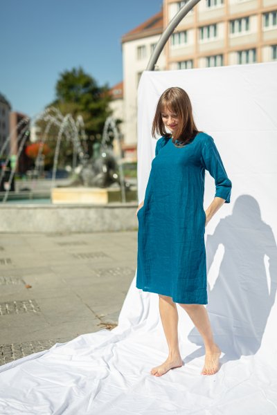 Our most popular, most versatile and best-selling dress. You can wear it all year round and on any occasion. Elegantly with a belt to work, casually without a belt on vacation in the summer when buying vegetables at the local market. The 3/4 length sleeves are also suitable for the office in the summer, where the cold air conditioning is often turned on. The dress is more fitted in the shoulders and flares out into an A-line in the skirt. "Monaco" fits almost every figure. If you have wider hips, this cut will fit you thanks to the flare at the bottom. They also look great in tunic-style with pants. Like many of our other models, you can order belts in different colors as separate products.
