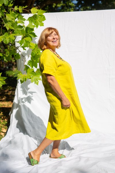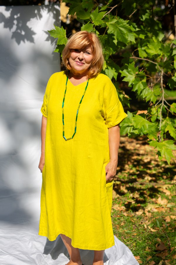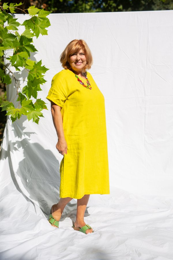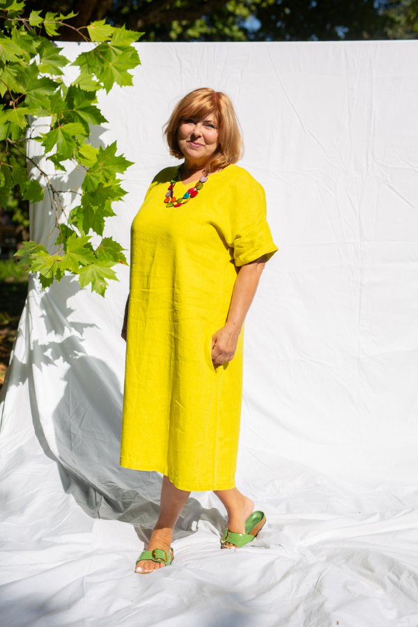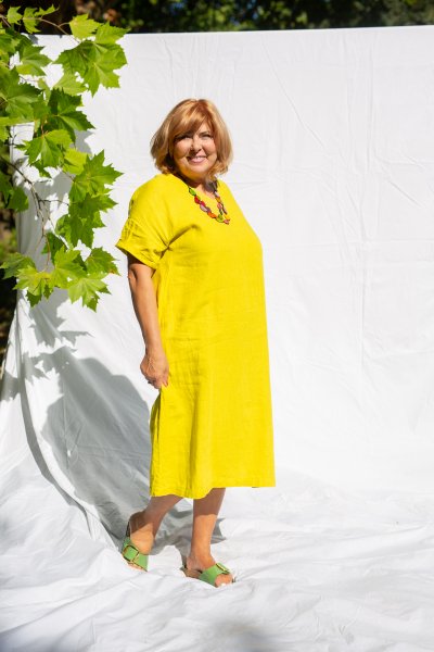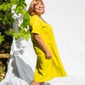 Long, comfortable, wide dresses for summer. On vacation, you will appreciate their airiness and you can wear them for all-day activities, or complemented with nice natural jewelry for dinner. In citrus yellow, they will give you energy and make blondes literally rejuvenate. You may think they are similar to the Monaco dress, but the difference is in the shoulders. The Tenerife has a dropped shoulder and the dress is looser at the top. On the other hand, the Monaco dress fits more precisely in the shoulders and does not have such an oversized look.