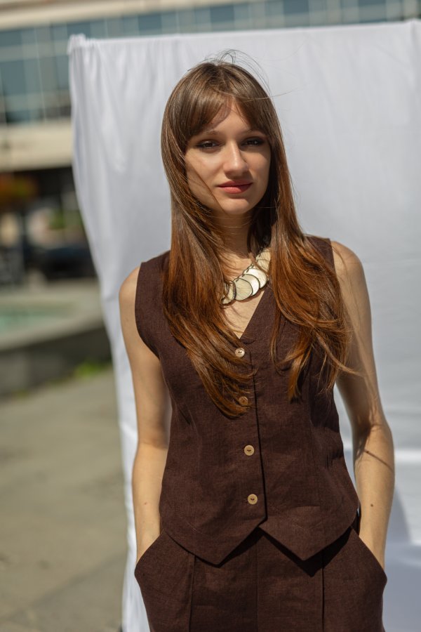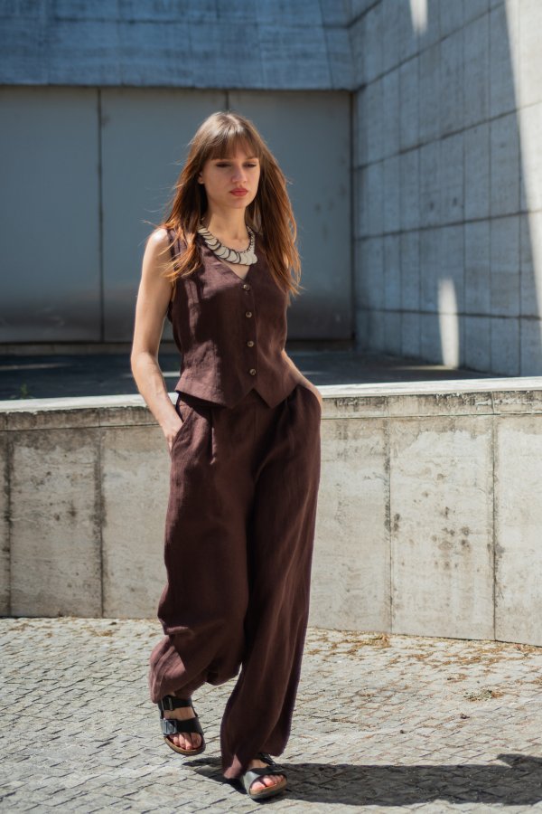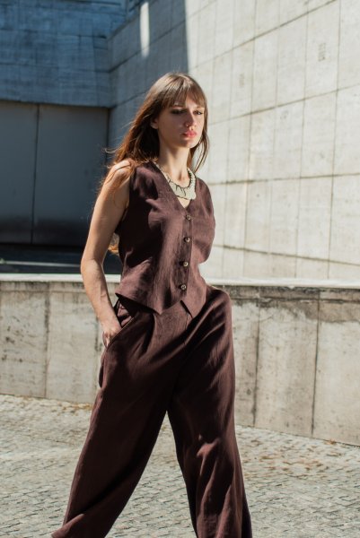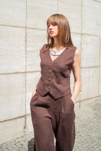 The Salzburg Linen Vest is designed to be worn as a bottom layer in the tropical summer months, or layered over a shirt dress or other favorite top at other times.