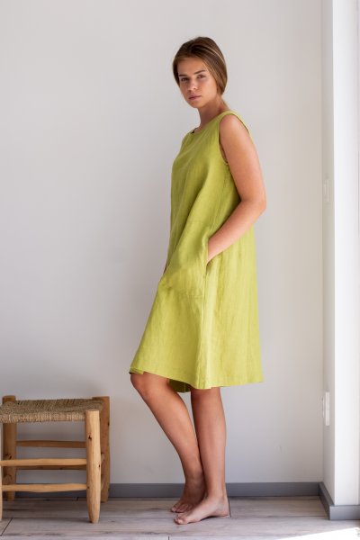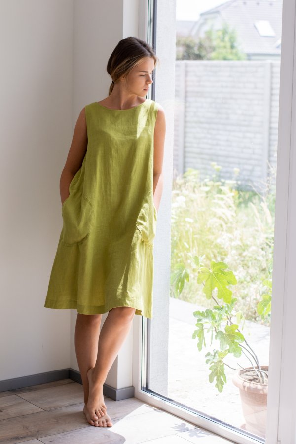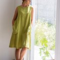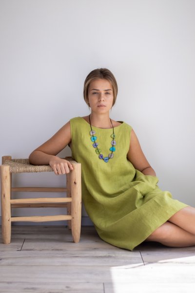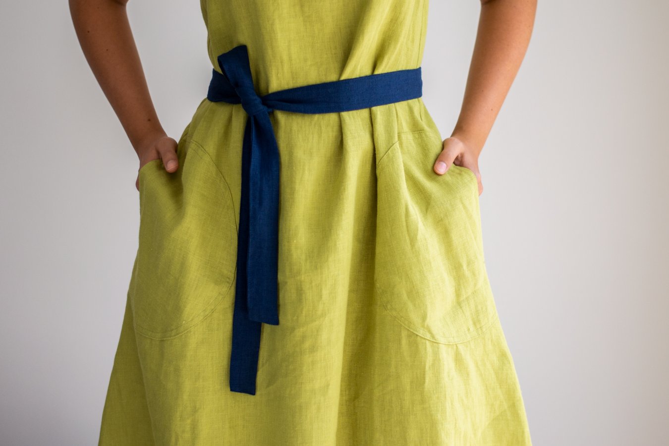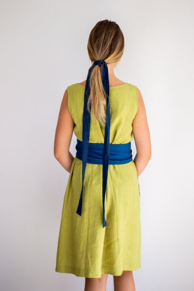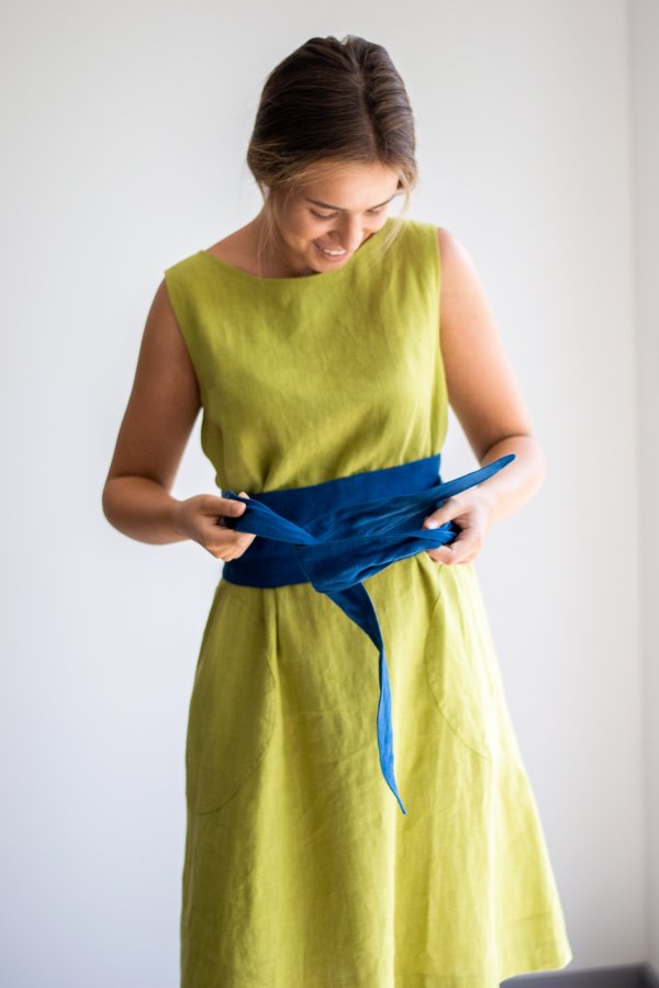 Šaty Belize sú bez rukávov s lodičkovým výstrihom. Štandardná dĺžka je tesne pod kolená, ale najmä v letných mesiacoch ich šijeme aj v mini dĺžke nad kolená. Podobne ako mnohé ďalšie modely sa dajú nosiť s opaskom v rôznych farbách. Počas horúcich letných mesiacov Vám ich odporúčame objednať v niektorej farbe z tenšieho ľanu. Napíšte nám to prosím do poznámky. Opasok si môžete doobjednať v rôznych farbách a šírkach.